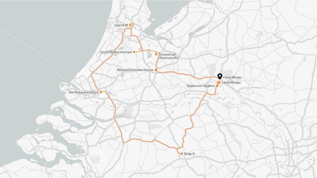 Design ligt ons natuurlijk na aan het hart. Vandaar deze ode aan Nederlandse ontwerpen, vaak gedurfd, minimalistisch en toch altijd puur functioneel. Je kunt deze route op elk punt starten, en natuurlijk in etappes doen. Je kunt ook alleen kiezen voor de plekken die je vanuit de auto kunt bewonderen.