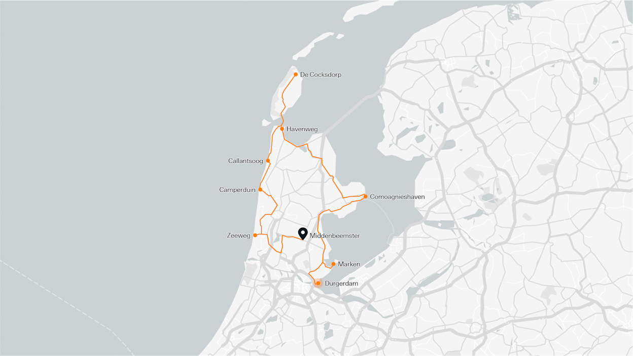 Deze rondreis langs de kust van Noord-Holland brengt je langs vissersplaatsen, stranden en de historie van Nederland. Begin je vanaf bijvoorbeeld Durgerdam, dan zie je eerst de historische kustplaatsen van het IJsselmeer en natuurlijk Marken, waar de tijd lijkt te hebben stilgestaan. Rijd je door naar de kop van Noord-Holland, dan kun je als je de timing vooraf slim uitkiest ook de oversteek naar Texel maken. Lekker uitwaaien op de uitgestrekte stranden, wellicht overnachten op het eiland en dan weer de boot op.