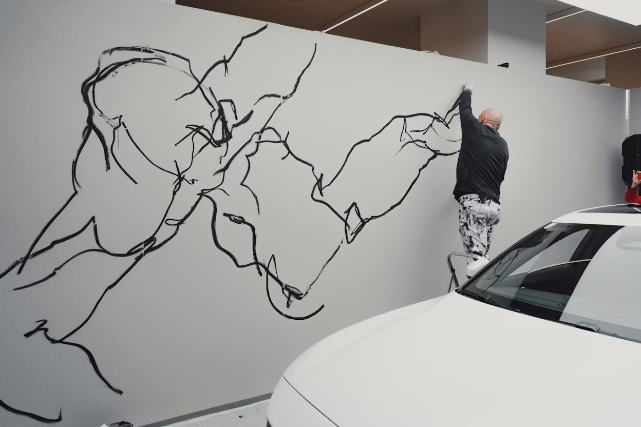 Hannes Mlenek zählt mit seinen Zeichnungen und Installationen zu den renommiertesten Vertretern seines Genres und ist bekannt für markante Linien, die er gekonnt auf Papier oder auch in den Raum setzt. So auch in den Polestar Art Space, wo er eine neue Arbeit direkt rund um einen Polestar 2 schuf, während er mit Parnass Chefredakteurin Silvie Aigner über Kunst, Inspiration und den Punkt als Impact und Idee sprach.