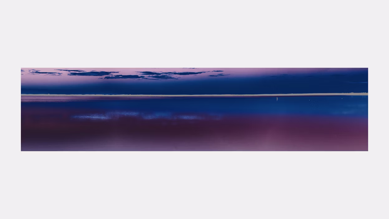This project was a rare opportunity for Justin to step outside the studio and into a slower, more contemplative rhythm. He travelled to Lake Tyrrell, a salt lake on Boorong Country in Northern Victoria, where over several days he photographed the antitwilight arch - a projection of the Earth's shadow into space. A fleeting, atmospheric phenomenon that exists at the edge of visibility. “The experience became a kind of meditation,” says Justin of his experience. “The arch is easy to miss, appearing only in perfect conditions and only for a few minutes.”