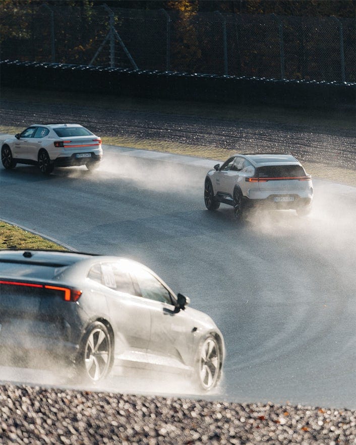 Die Fahrer übten unter der Anleitung unserer Instruktoren verschiedene Szenarien: präzises Slalomfahren, Notbremsen und kontrollierte Ausweichmanöver bei plötzlich auftretenden Hindernissen. Der Fokus lag darauf, den Teilnehmern ein Gefühl für die Reaktionsfähigkeit und das Sicherheitsniveau der Fahrzeuge zu vermitteln. So wurde deutlich, dass Polestar nicht nur für Performance und Design steht, sondern auch höchste Ansprüche an die Sicherheit seiner Modelle erfüllt.