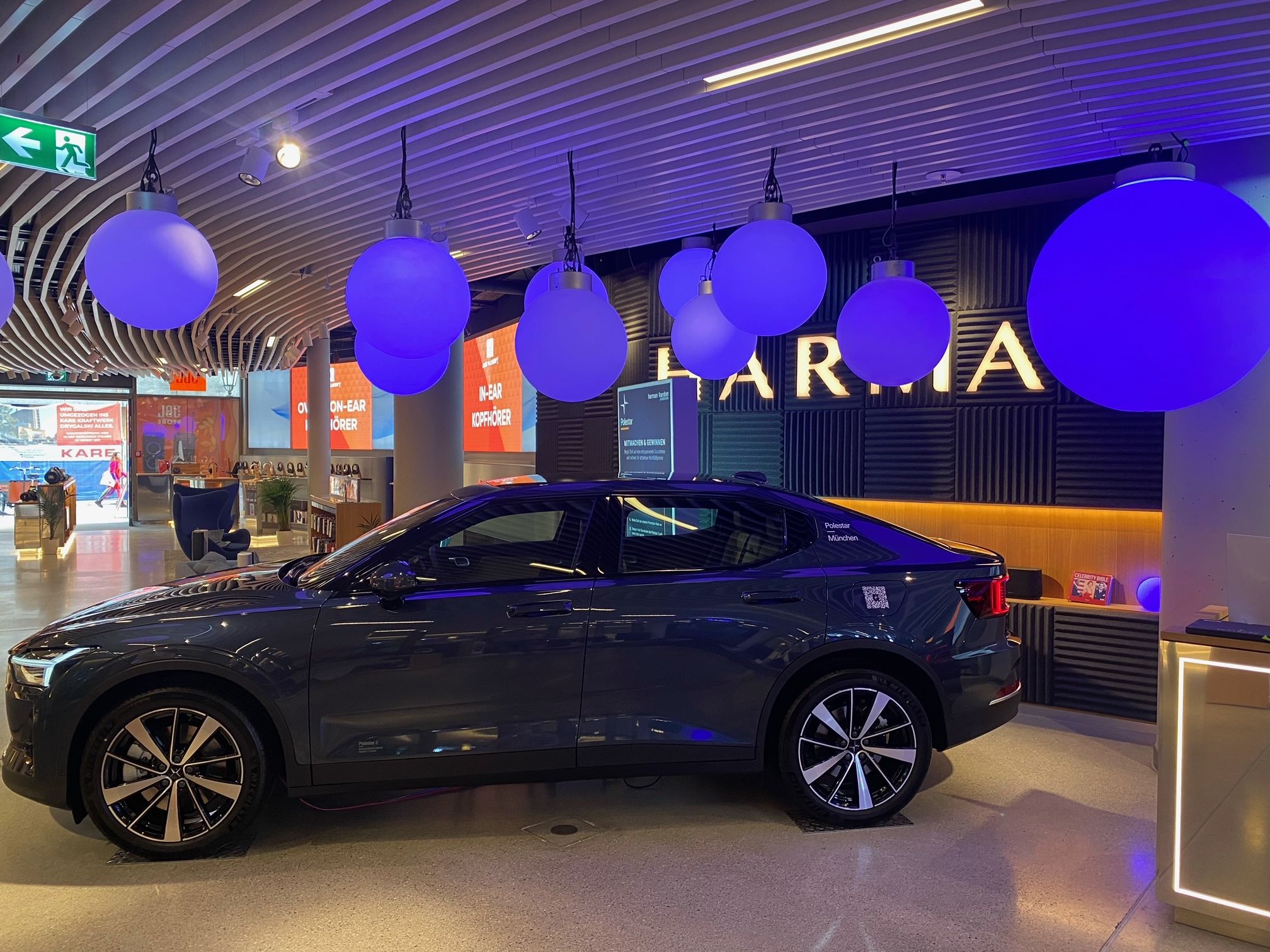 Nehmen Sie Platz in dem ausgestellten Polestar 2 und entkommen Sie dem Stress des Alltages. Das schont nicht nur die Umwelt, sondern auch Ihre persönlichen Ressourcen. Das Fahrzeug ist Teil einer modernen Lichtinstallation, welche das pure und moderne Design von Polestar reflektiert. Zusammen mit den Klängen der Harman Kardon Soundanlage entsteht eine Reise für die Sinne. Des weiteren haben Sie die Möglichkeit an dem Sound Quiz teilzunehmen und mit etwas Glück den Polestar 2 plus fünf Harman Kardon Produkte für ein ganzes Wochenende zu gewinnen.