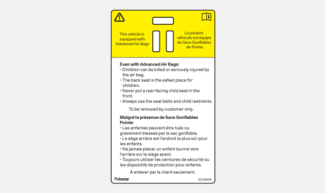 Polestar follows NHTSA's and Transport Canada's recommendations and recommends that all children up to and including 12 years of age sit in the rear seat. This is a particularly strong recommendation for children in rearward-facing child restraints.