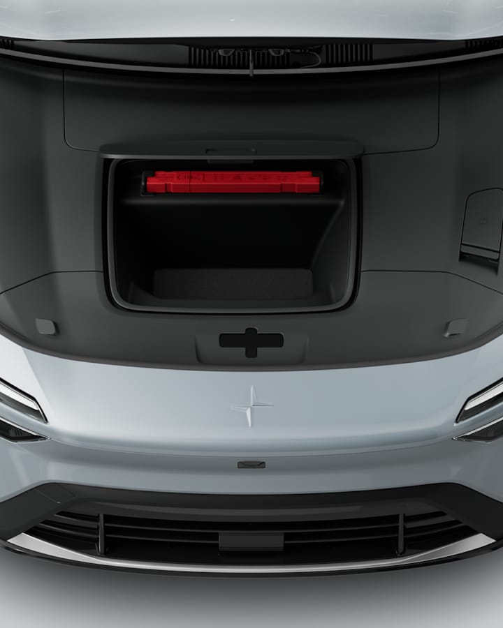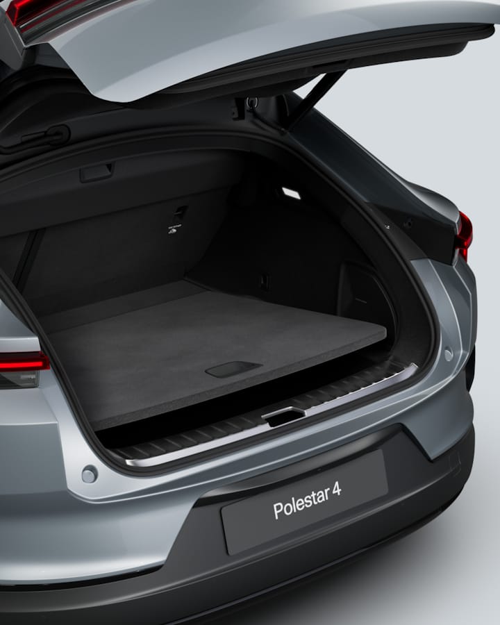 Folding the rear seats down expands the total volume from 526 litres to 1,536 litres, and Polestar 4's virtual window means cargo can be stacked to the brim without blocking rear visibility. There's room under the floor for smaller items, and the floor level can be adjusted to suit the cargo.