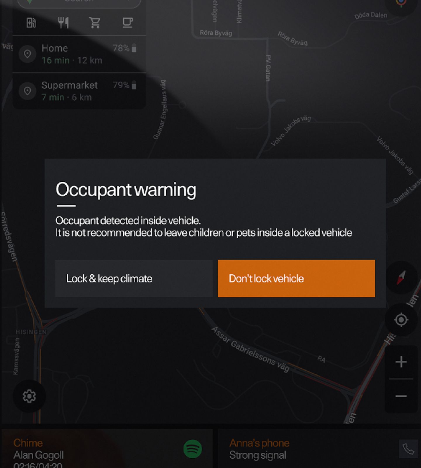 When leaving the car, four motion-sensing radars scan the cabin. The tiniest movement stops the doors from locking and triggers a warning that a child or pet may still be inside. If this is intentional, Polestar 3 can be locked while the climate system stays active.