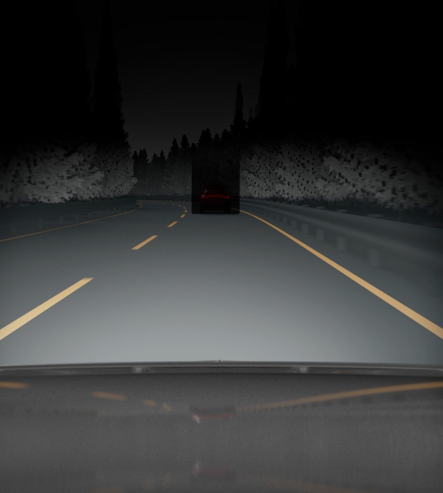 The advanced Active High Beam system detects both oncoming traffic and cars in front of Polestar 3, automatically switching to low beam to avoid blinding other drivers.