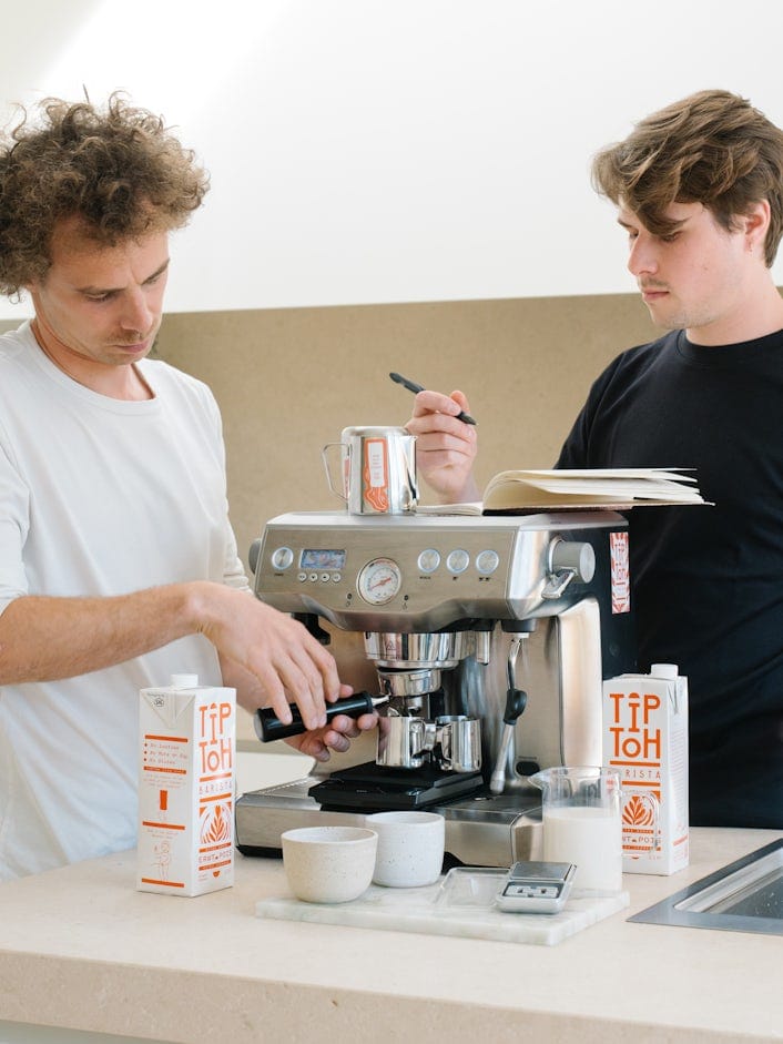 « C'est en fait ma sœur - la petite amie de Louis - qui a planté la graine. Elle m'a fait une remarque : notre réfrigérateur est plein de lait végétal. On ne pourrait pas en faire quelque chose ? » reprend Arnaud. Louis lui a alors soumis l'idée. Arnaud était également à un tournant de sa vie à l'époque. « J'ai obtenu mon diplôme d'ingénieur commercial au milieu du Covid. Le changement climatique était déjà très présent dans mon esprit », poursuit-il. « Je mangeais végétarien depuis un certain temps et j'essayais consciemment de prendre moins l'avion. Mais je voulais en faire plus ». Les beaux-frères sont devenus des partenaires commerciaux et, ensemble, ils ont fait sortir Tiptoh de terre.