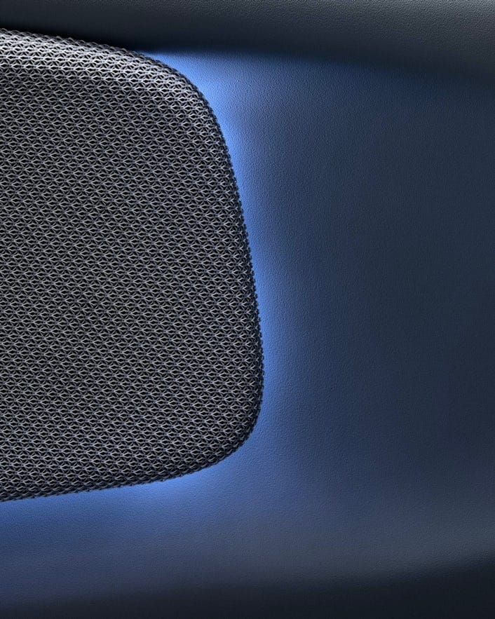 Jean-Arthur explains that Polestar’s philosophy focuses on utilising innovative techniques and materials to redefine luxury standards in interior design. He uses the example of Polestar 4 to illustrate the cross-fertilisation of ideas. When conceptualising the car, his team looked to the world of fashion and high-end sportswear for material inspiration and processes – all the “soft tech” aspects of the car interior, he notes. Tech Knit, for instance, is a mesh form made of recycled PET (polyethylene terephthalate), backlit and used as a decorative cover for the car’s sound system. Tailored Knit is an upholstery designed for the Polestar 4 car seats that employs a process inspired by the running shoe industry, utilising recycled yarn and knitting the exact contour needed without generating any waste.