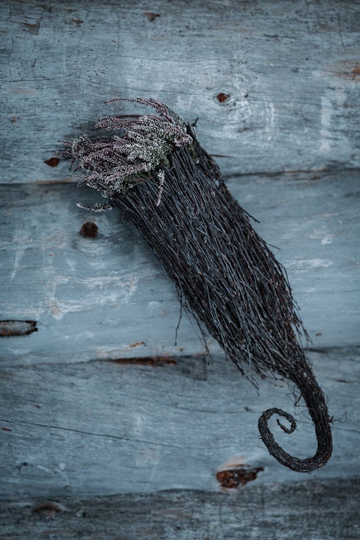 Dried heathers hanging on a house.
