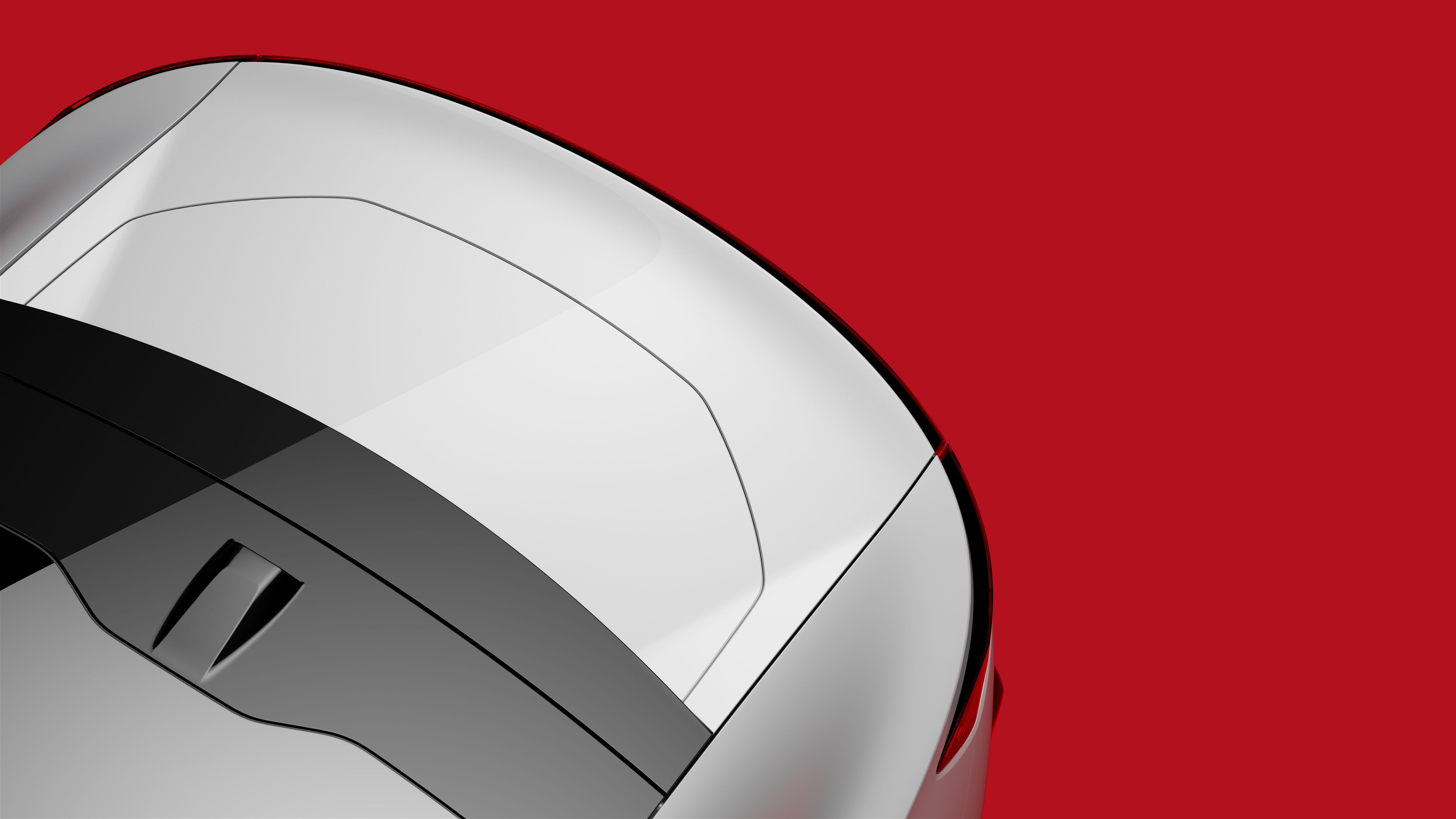 Polestar 4 from behind, showing the upper part. Red background