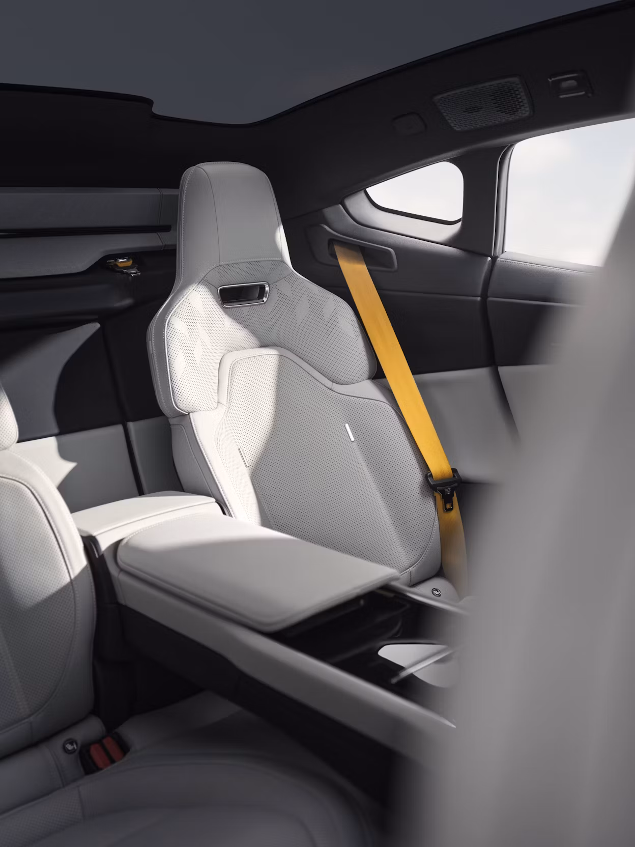 이처럼 날렵한 디자인을 갖췄음에도 폴스타 5는 넉넉한 2열 공간을 확보했다. 폴스타 4와 마찬가지로 2열의 헤더 구조를 뒤쪽으로 이동시키고, 디지털 룸미러를 적용했기 때문이다. 또한 폴스타 모델 중 가장 큰 2미터 길이와 1.25미터 폭의 파노라믹 글래스 루프를 탑재해 2열 승객에게 넓은 개방감을 제공한다.