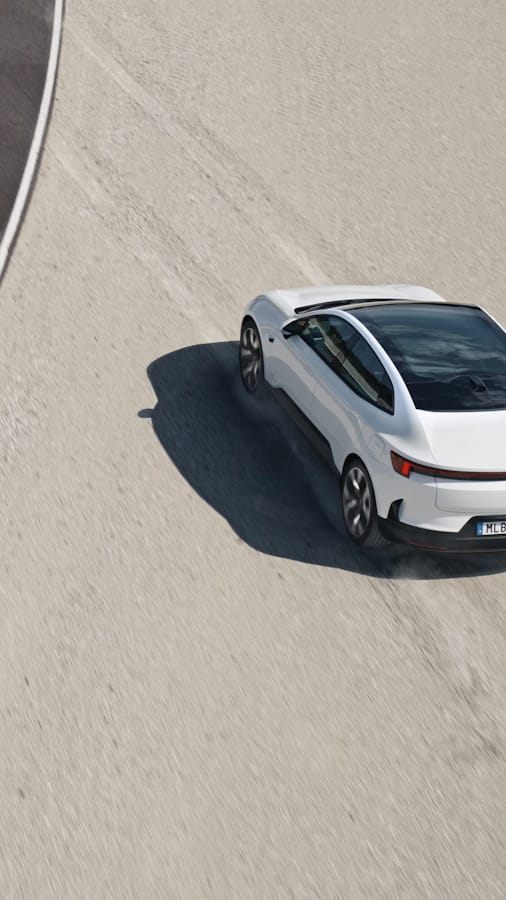 Onder voorbehoud van definitieve goedkeuring. Actieradius is gebaseerd op de Polestar 4 Long range Single motor en de WLTP-norm. In Europa worden alle elektrische voertuigen onderworpen aan de Worldwide Harmonised Light Vehicle Test Procedure (WLTP). Daarbij meet men de actieradius van een wagen die met een gemiddelde snelheid van 46,5 km/u rijdt bij zomertemperaturen en met een batterijlading van 100% bij vertrek tot 0% aan het einde van de testprocedure. De werkelijke actieradius is in de praktijk afhankelijk van het rijgedrag en andere externe factoren. Laadtijd is gemeten van 10 tot 80% capaciteit met behulp van een snellader met gelijkstroom van 200 kW. Prestaties zijn gebaseerd op de Polestar 4 Long range Dual motor.