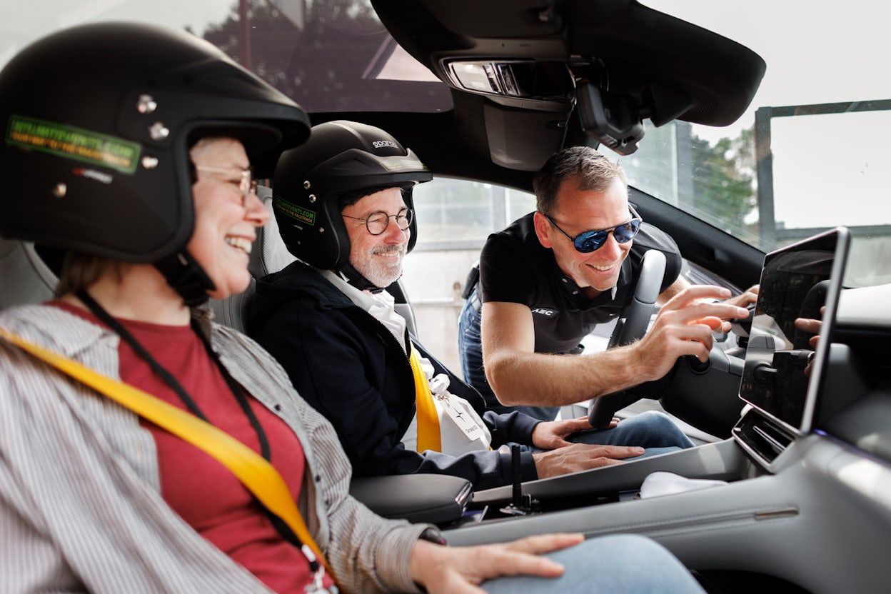 Voor wie geen genoeg kon krijgen van de adrenalinekick, was er de 'hot lap' met een van de Polestar-coureurs: een ronde waarin het rijpedaal in no-time de vloer raakt, de apex op volle snelheid wordt genomen en elke deelnemer op de bijrijdersstoel zich afvraagt of ze zichzelf nog wel bijrijder kunnen noemen.