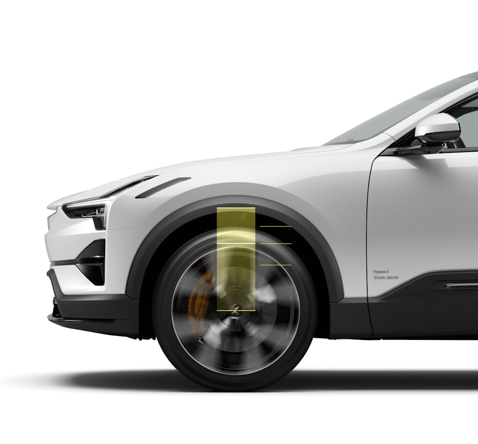 3. Aktiv luftfjæring er bare tilgjengelig med tomotorsversjonene av Polestar 3.