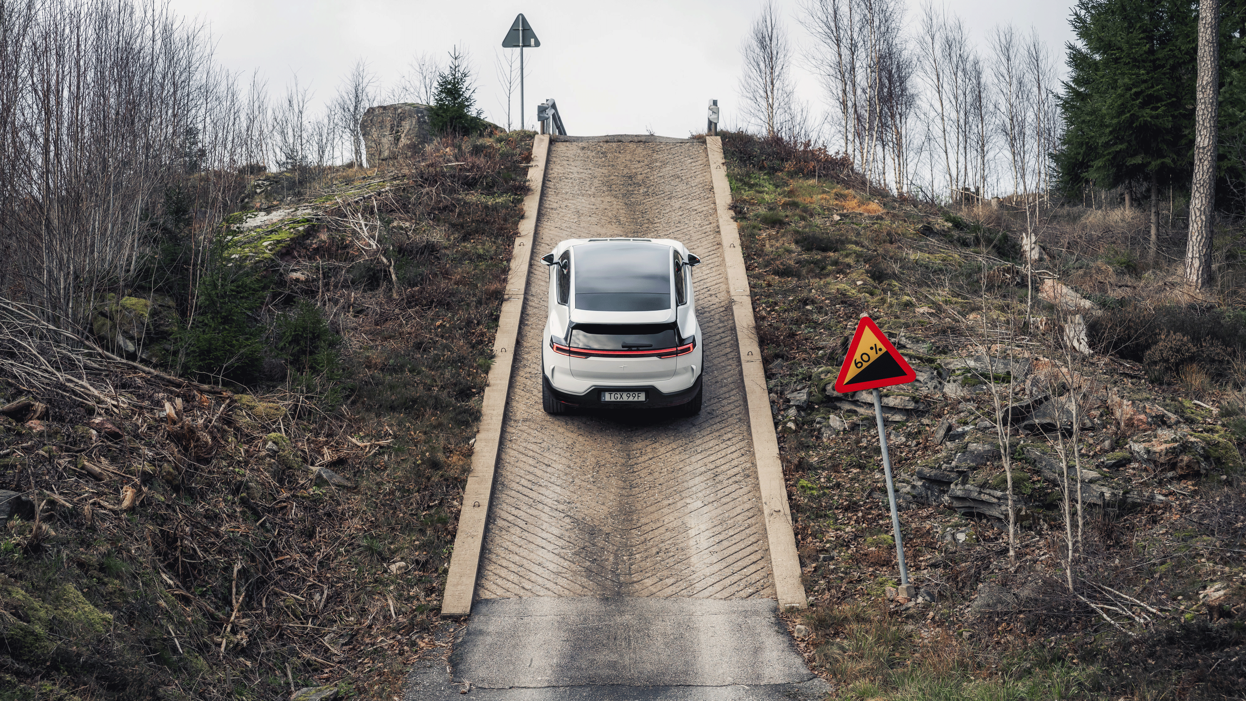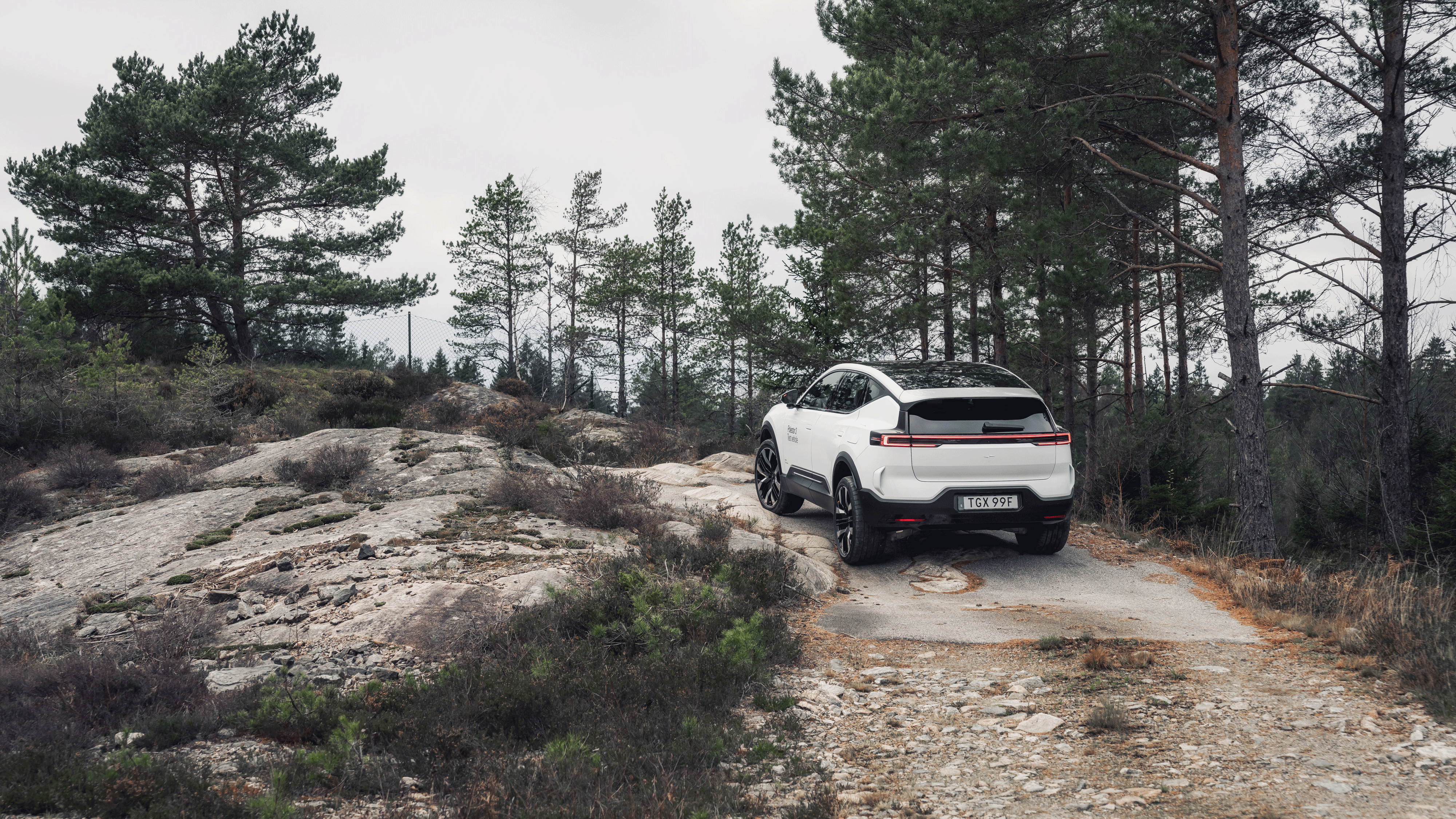 “Den har luftfjædring og torque vectoring på bakakselen. Det gjør at den er både agil og tar seg fram i terrenget som den første Polestar noensinne.”
