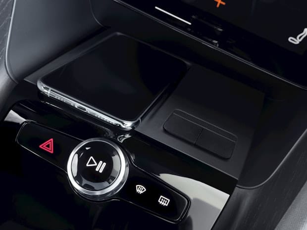 Leave behind the clutter of cables and car chargers. Simply place your phone on the rubber pad under the center display and let it charge.